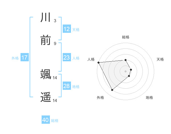 川前 颯遥さんを姓名の画数から五運を鑑定