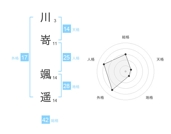 川嵜 颯遥さんを姓名の画数から五運を鑑定