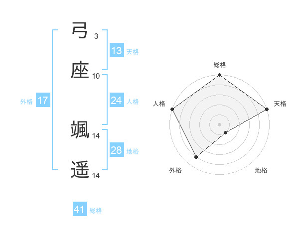 弓座 颯遥さんを姓名の画数から五運を鑑定