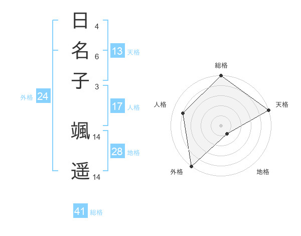 日名子 颯遥さんを姓名の画数から五運を鑑定