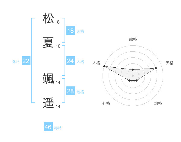 松夏 颯遥さんの天格は18画の4点!