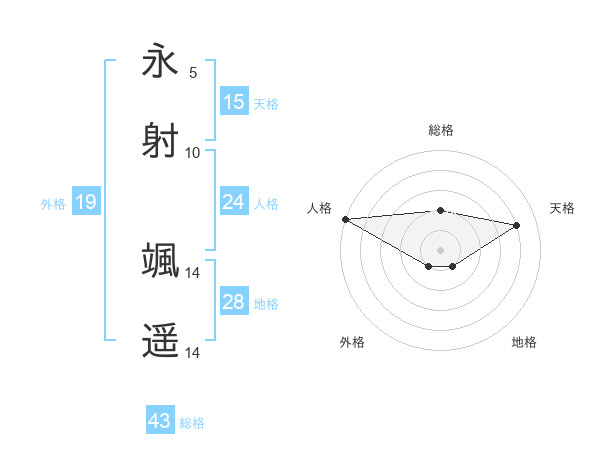 永射 颯遥さんの総格は43画の2点!
