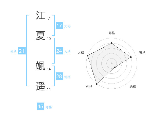 江夏 颯遥さんを姓名の画数から五運を鑑定
