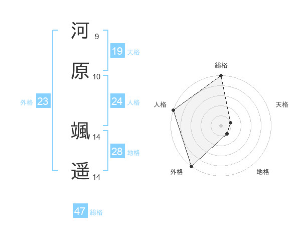河原 颯遥さんの総格は47画の5点!