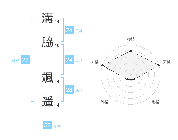 溝脇 颯遥さんの総格は52画の4点!
