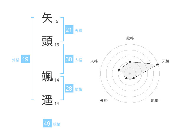 矢頭 颯遥さんの天格は21画の5点!