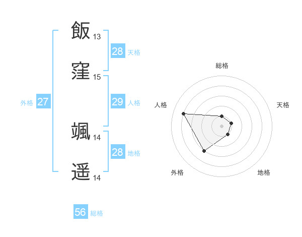 飯窪 颯遥さんの総格は56画の1点!