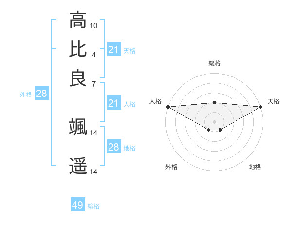 高比良 颯遥さんの天格は21画の5点