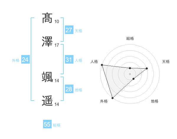 髙澤 颯遥さんの外格は24画の5点!