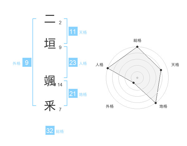 二垣 颯釆さんの総格は32画の5点!