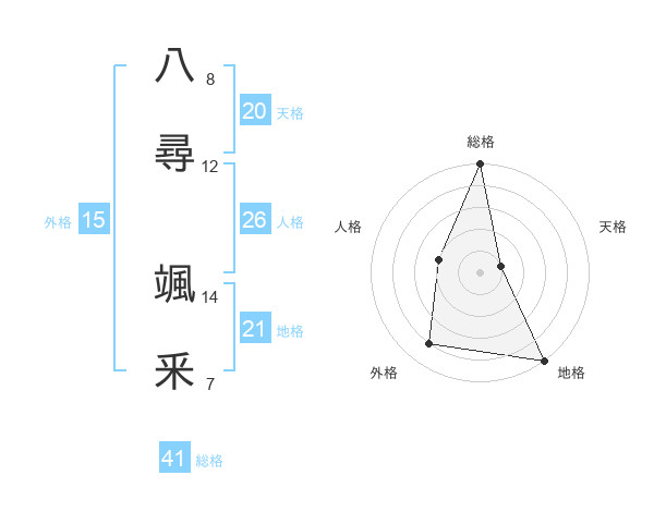 八尋 颯釆さんを姓名の画数から五運を鑑定