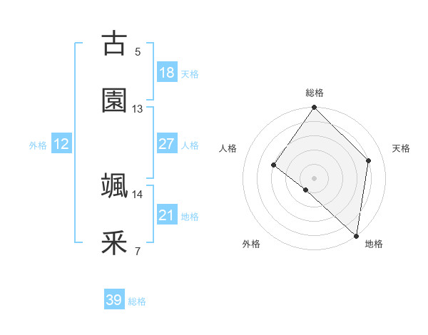古園 颯釆さんの総格は39画の5点!