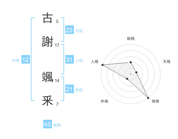 古謝 颯釆さんの総格は43画の2点!