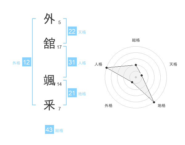 外舘 颯釆さんの総格は43画の2点!