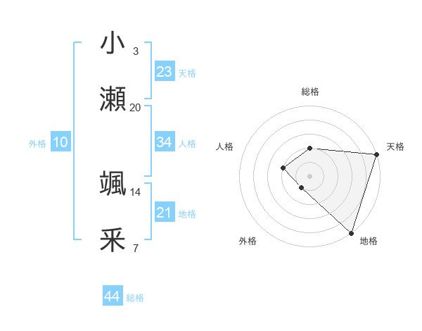 小瀬 颯釆さんの天格は23画の5点!