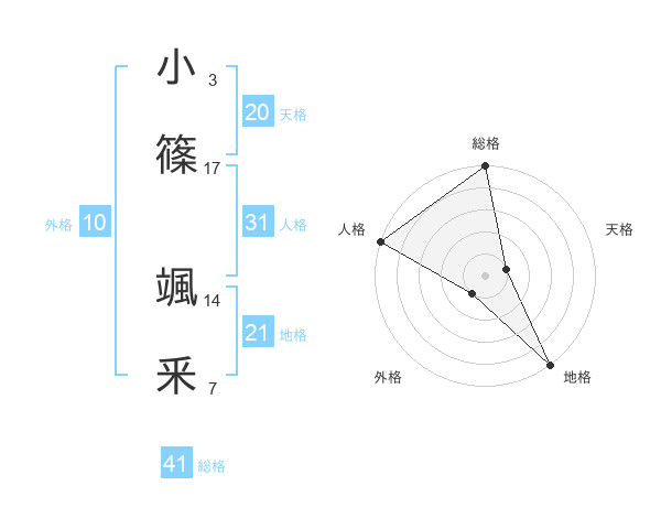 小篠 颯釆さんの地格は21画の5点!
