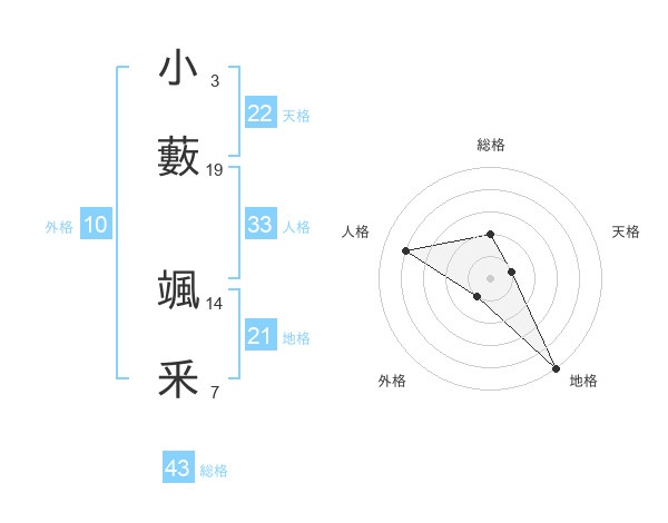 小藪 颯釆さんを姓名の画数から五運を鑑定
