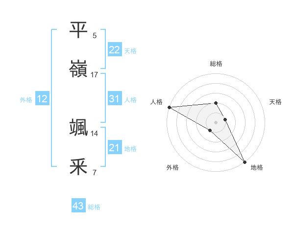 平嶺 颯釆さんの総格は43画の2点!