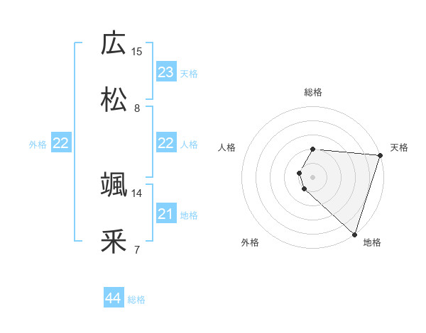 広松 颯釆さんを姓名の画数から五運を鑑定