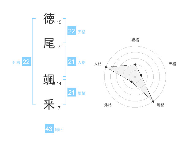 徳尾 颯釆さんの外格は22画の1点!
