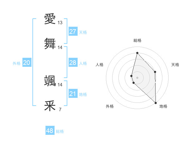 愛舞 颯釆さんの総格は48画の4点!