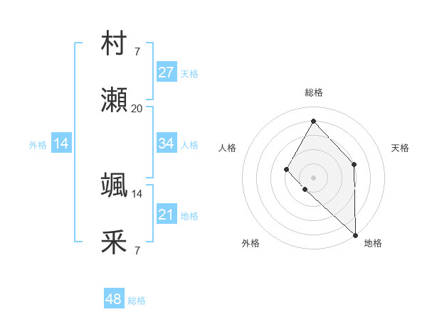 村瀬 颯釆さんを姓名の画数から五運を鑑定
