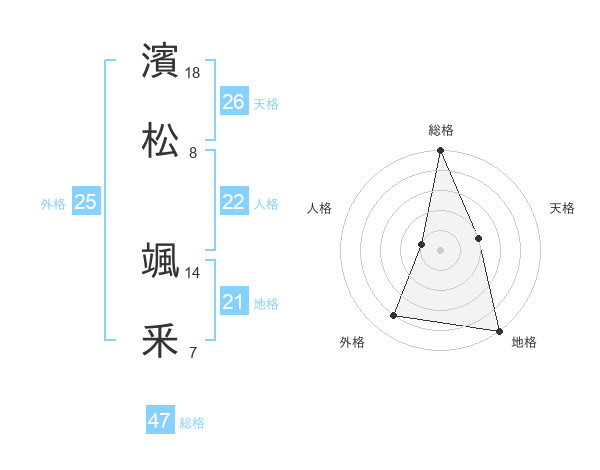 濱松 颯釆さんの総格は47画の5点!