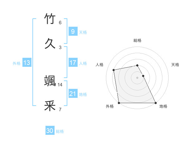 竹久 颯釆さんを姓名の画数から五運を鑑定