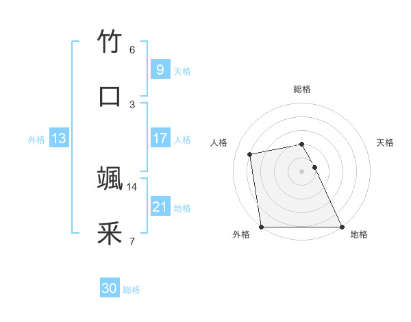 竹口 颯釆さんの総格は30画の2点!