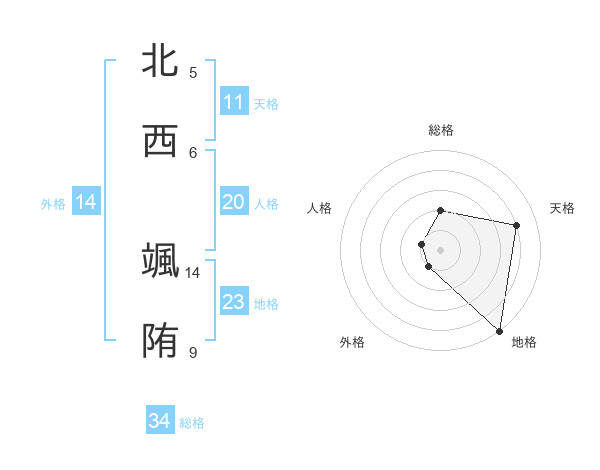 北西 颯陏さんの天格は11画の4点!