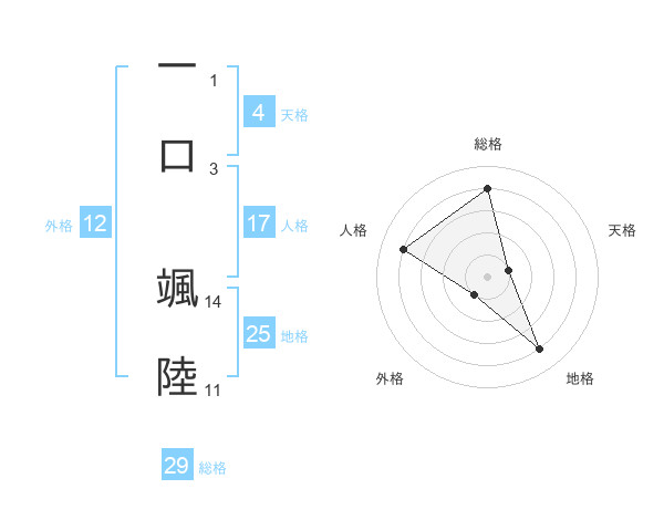 一口 颯陸さんを姓名の画数から五運を鑑定
