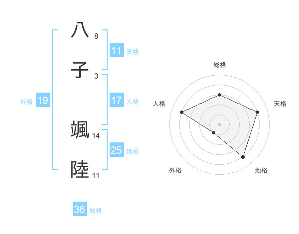 八子 颯陸さんを姓名の画数から五運を鑑定
