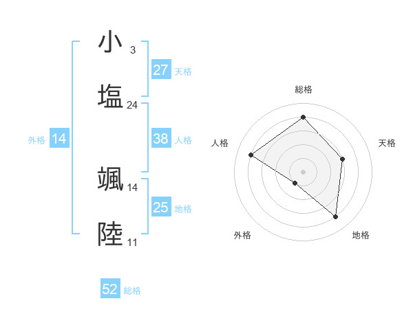 小塩 颯陸さんの総格は52画の4点!