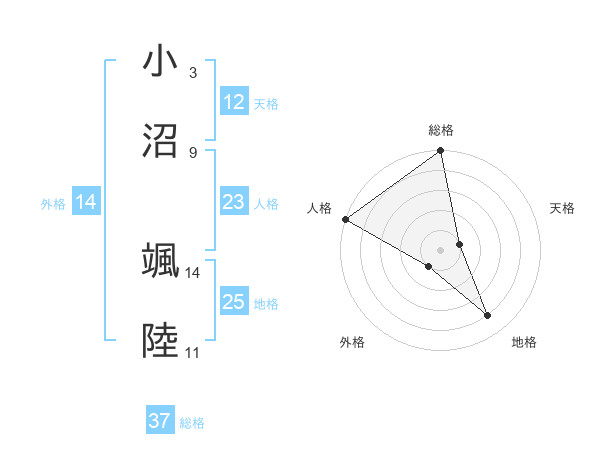 小沼 颯陸さんを姓名の画数から五運を鑑定