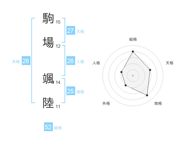 駒場 颯陸さんを姓名の画数から五運を鑑定