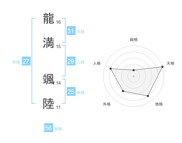 龍満 颯陸さんの天格は31画の5点!