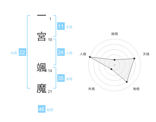一宮 颯魔さんの外格は22画の1点!
