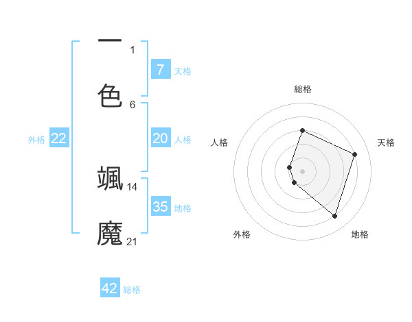 一色 颯魔さんの外格は22画の1点!