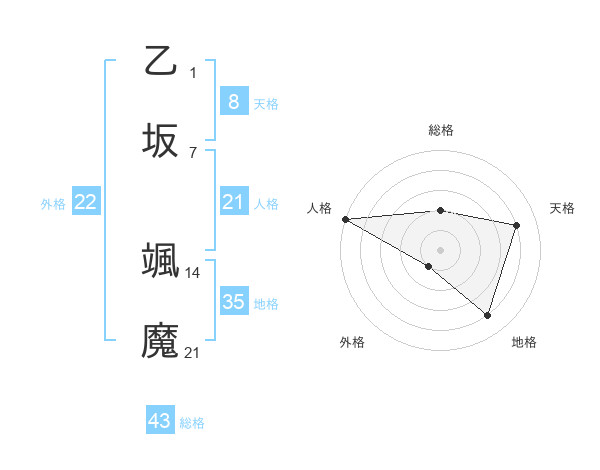 乙坂 颯魔さんを姓名の画数から五運を鑑定