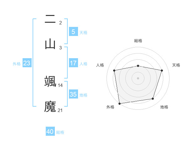 二山 颯魔さんを姓名の画数から五運を鑑定