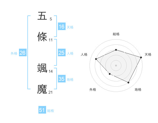 五條 颯魔さんの総格は51画の3点!