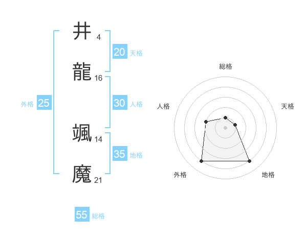 井龍 颯魔さんの総格は55画の1点!