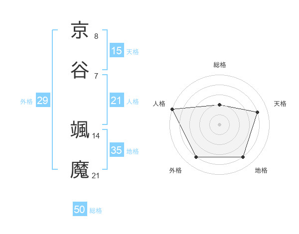 京谷 颯魔さんを姓名の画数から五運を鑑定