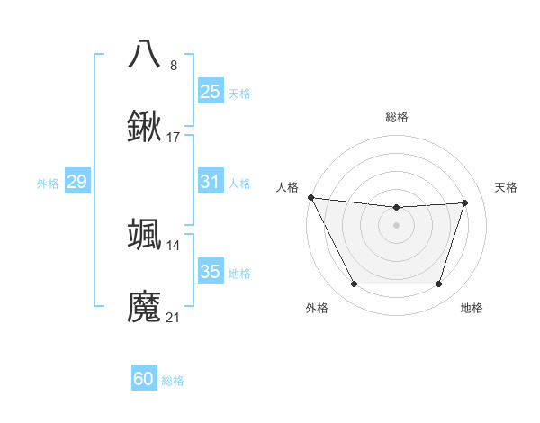 八鍬 颯魔さんを姓名の画数から五運を鑑定