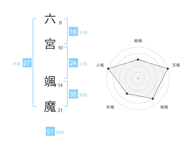 六宮 颯魔さんを姓名の画数から五運を鑑定