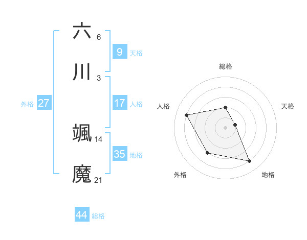 六川 颯魔さんの総格は44画の2点!