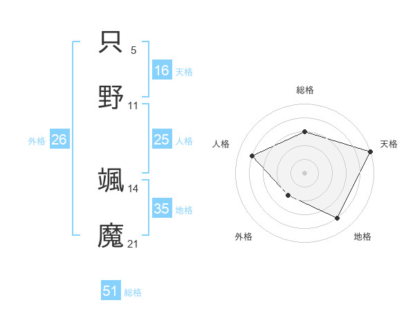 只野 颯魔さんの総格は51画の3点!