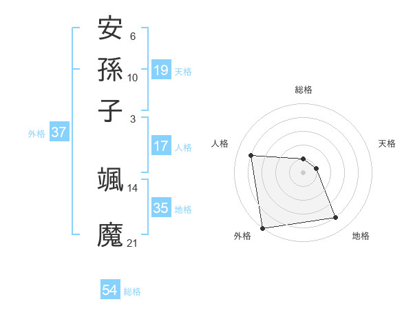 安孫子 颯魔さんを姓名の画数から五運を鑑定