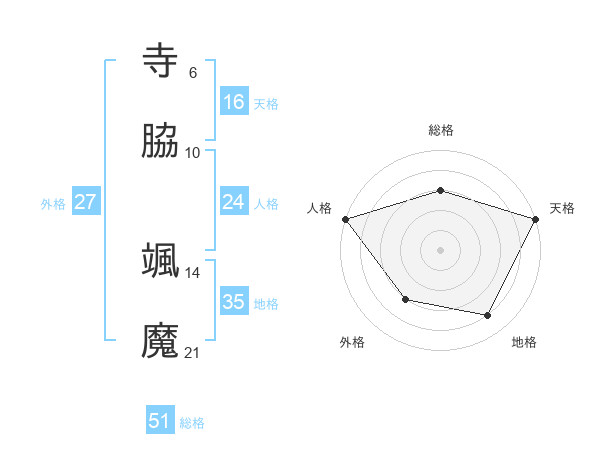 寺脇 颯魔さんの総格は51画の3点!