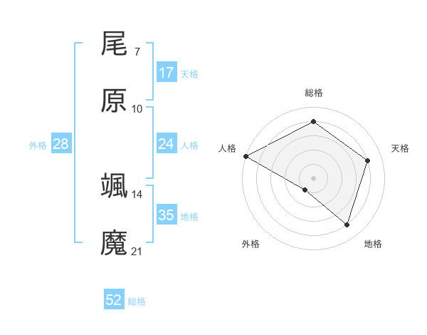 尾原 颯魔さんの総格は52画の4点!